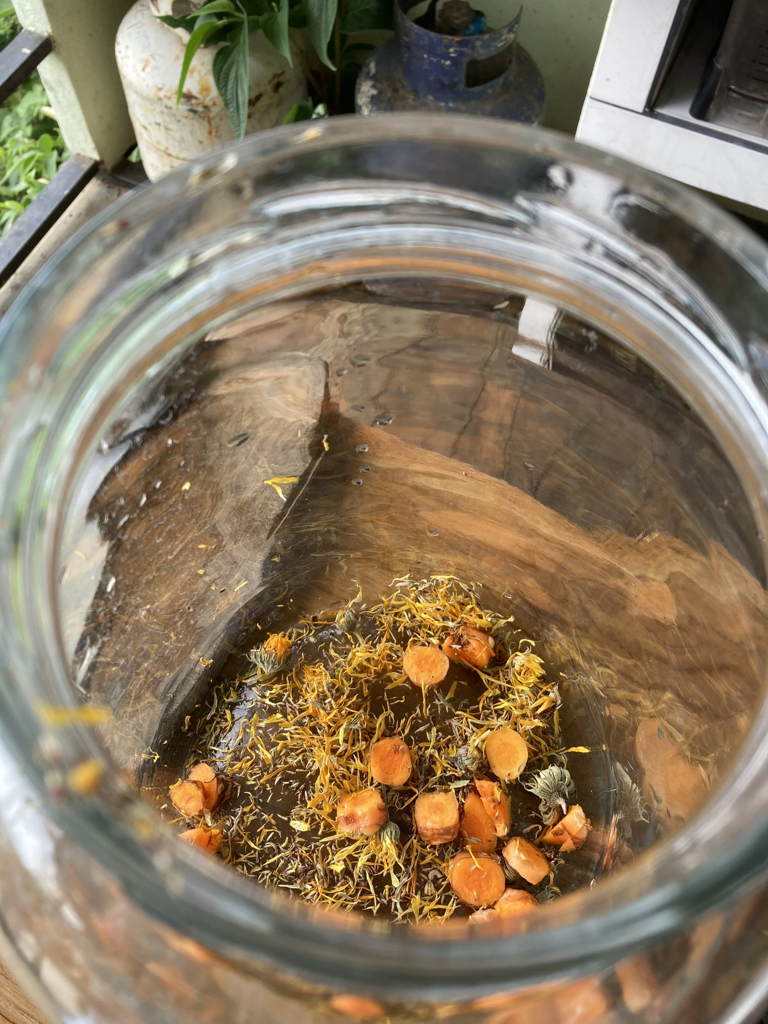 Second, an infusion to extract medicinal constituents from the calendula