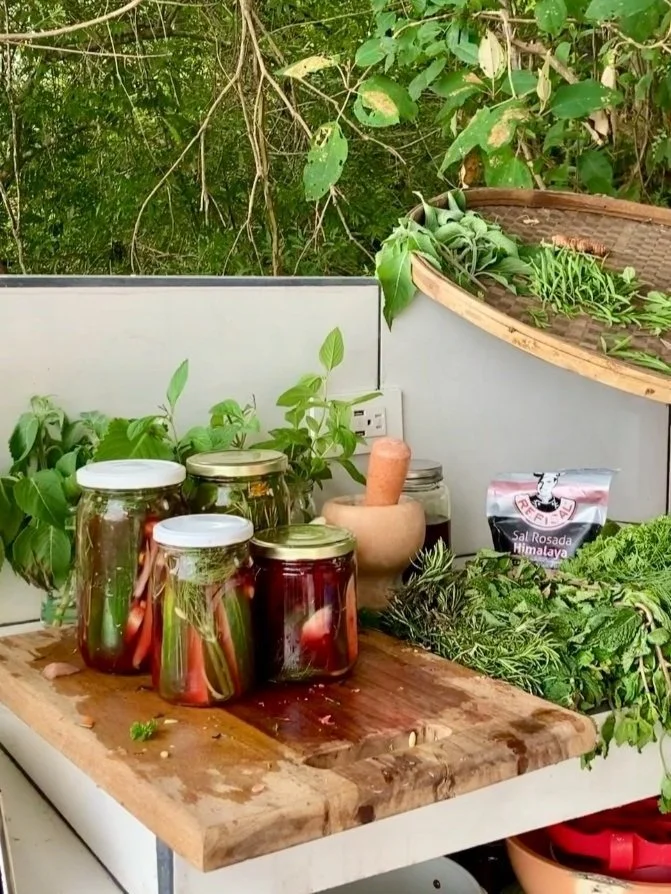 This is a super quick recipe for tasty snacking pickles that can feature any of your favorite garden herbs, favorite vegetables, and even certain fruits!