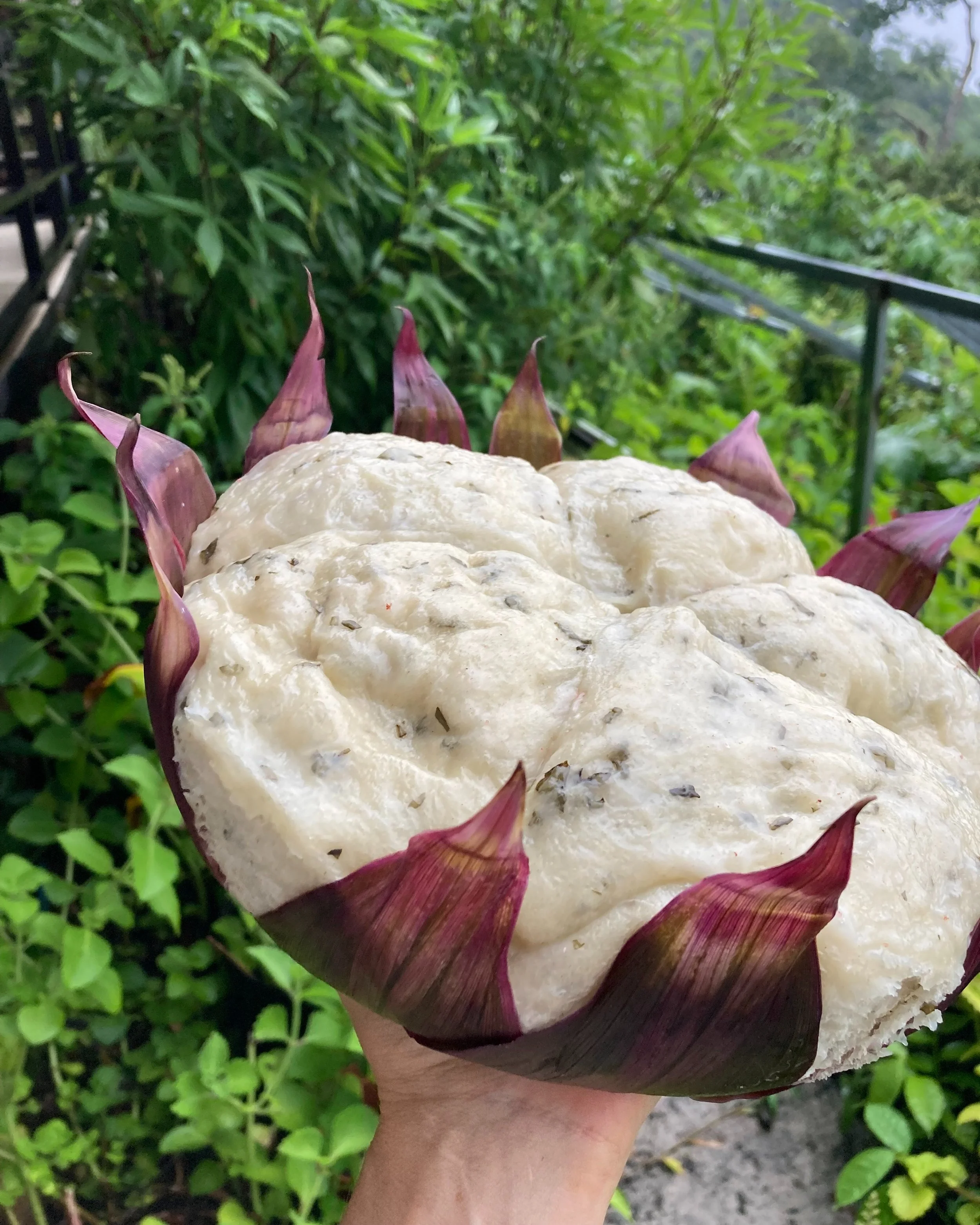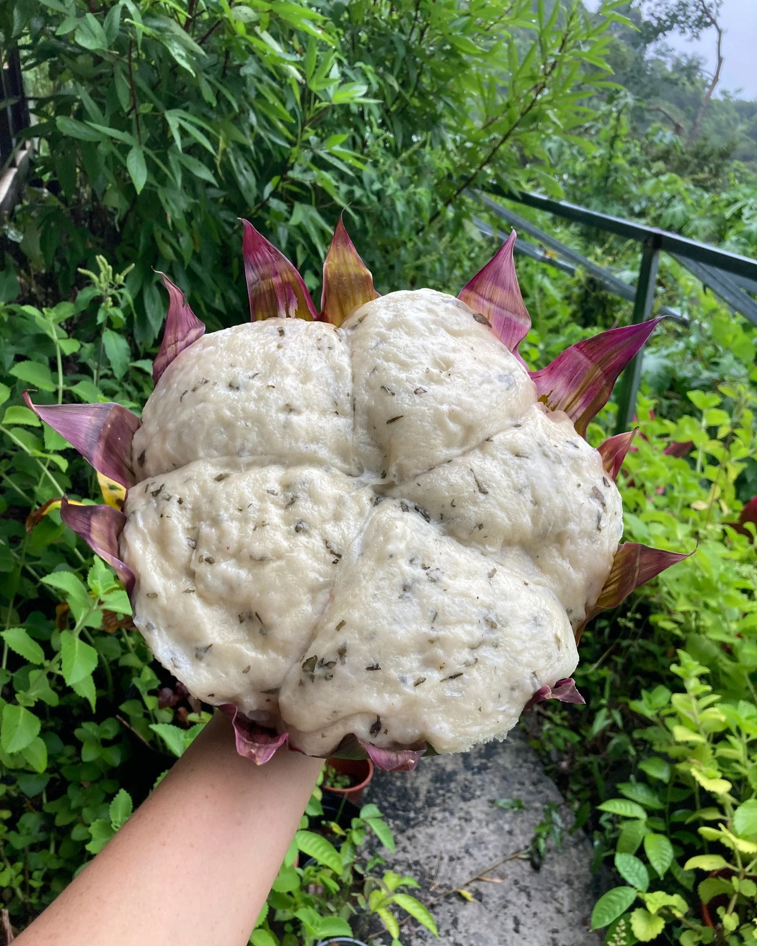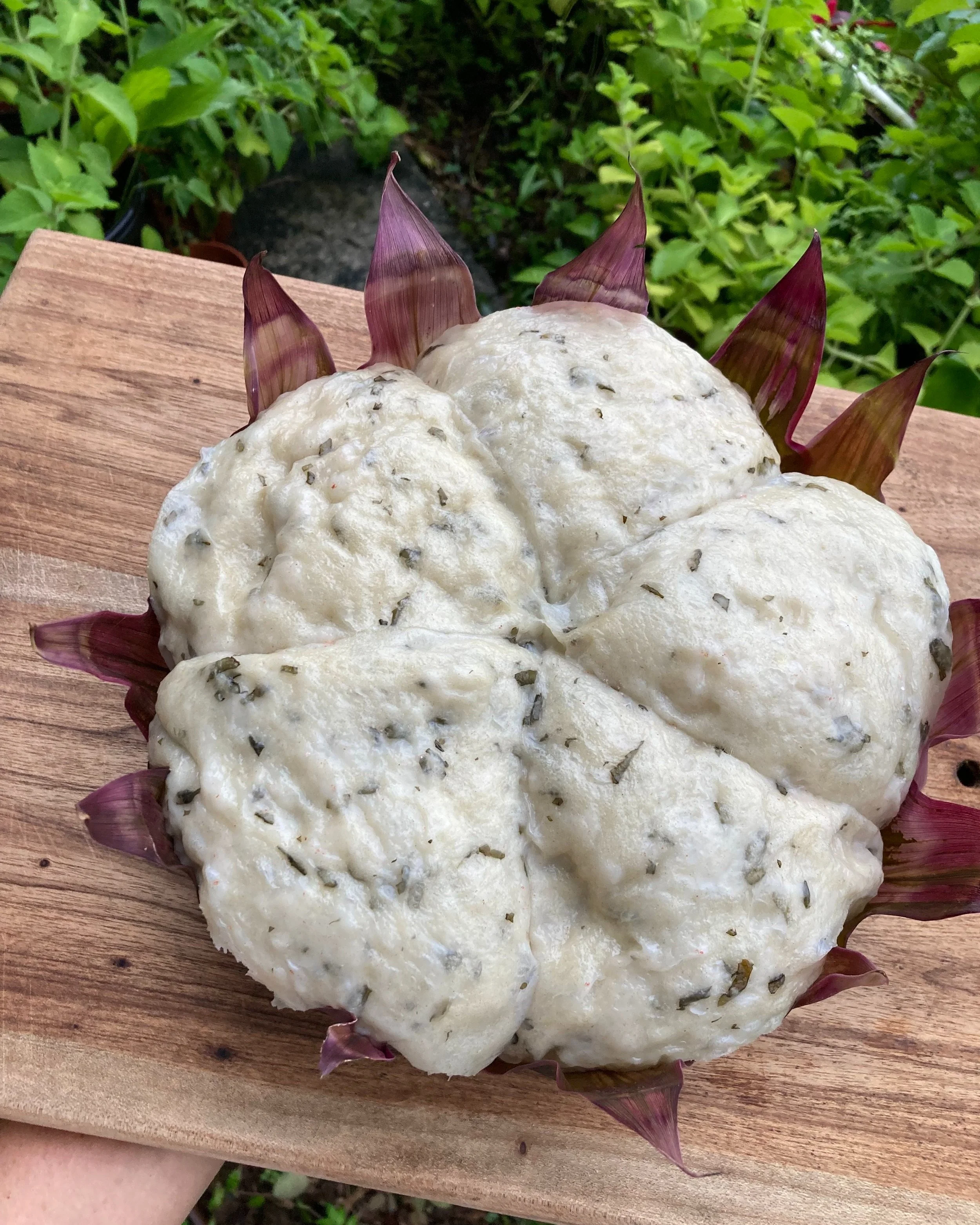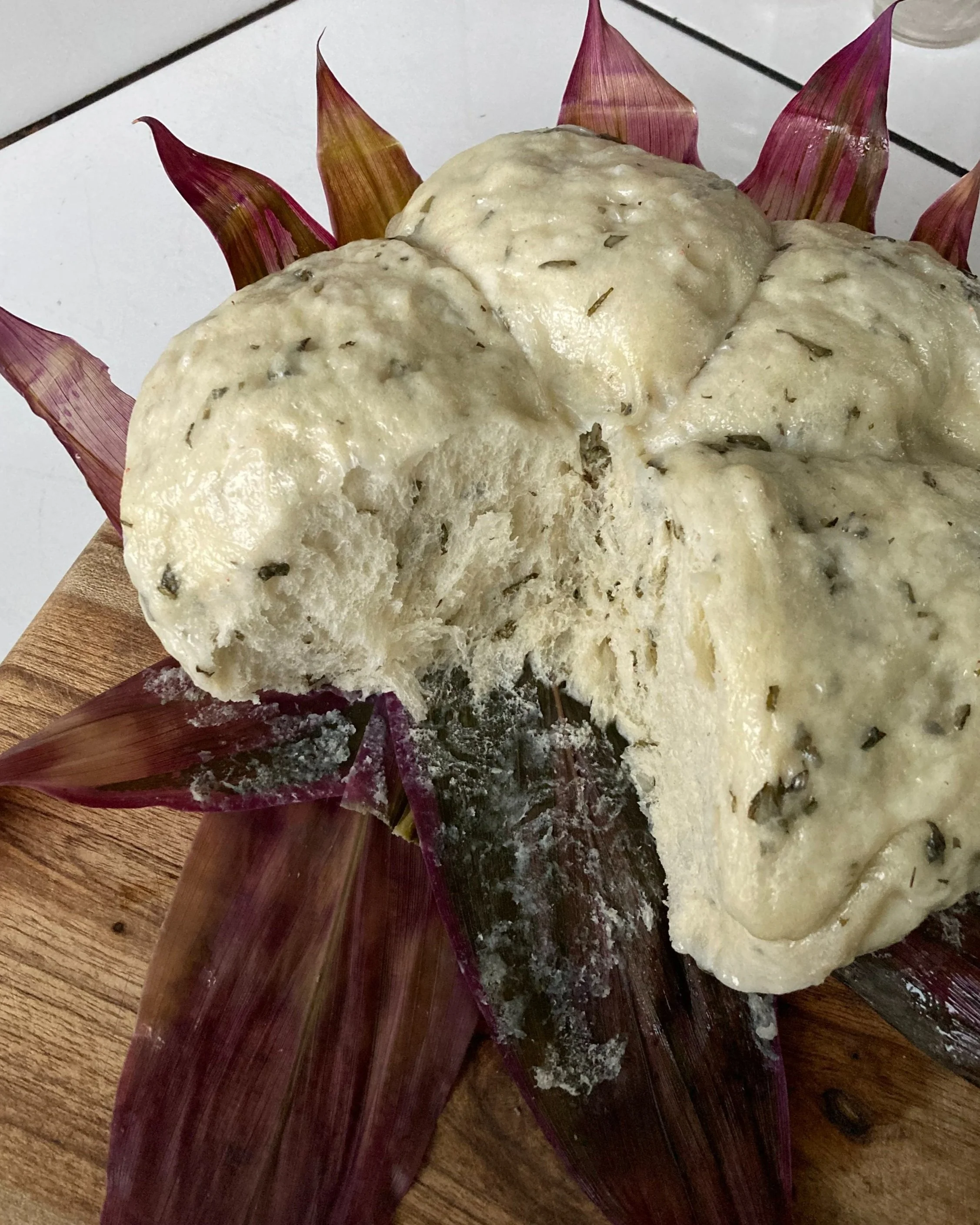 Steamed Bread with Fresh Gotu Kola and Holy Basil