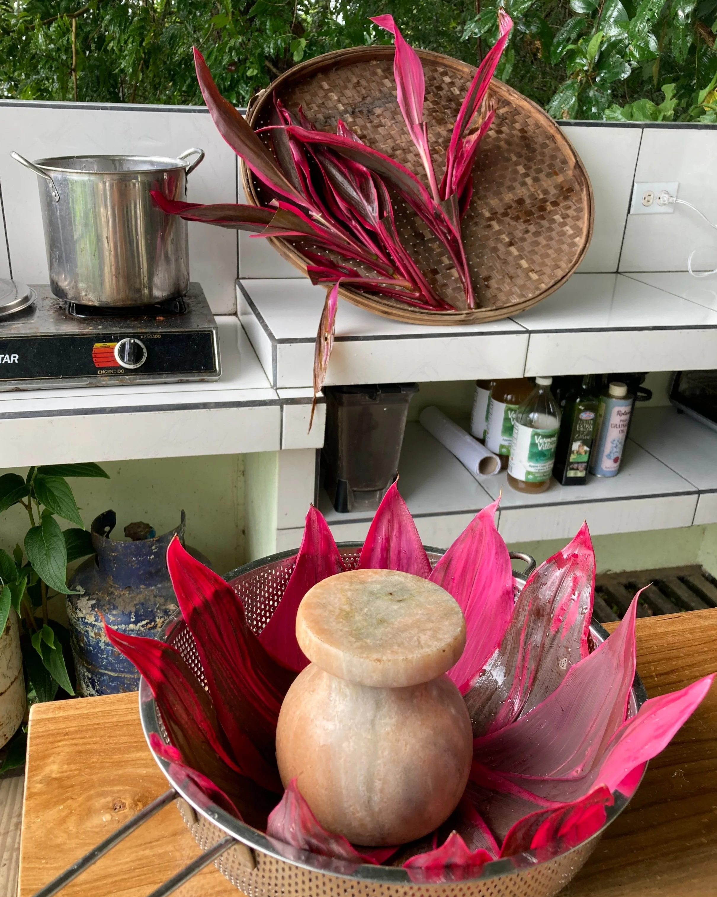Alternatives to the ti leaves could be banana leaves, corn husks, noni leaves, or hoja santa leaves (Piper auritum).